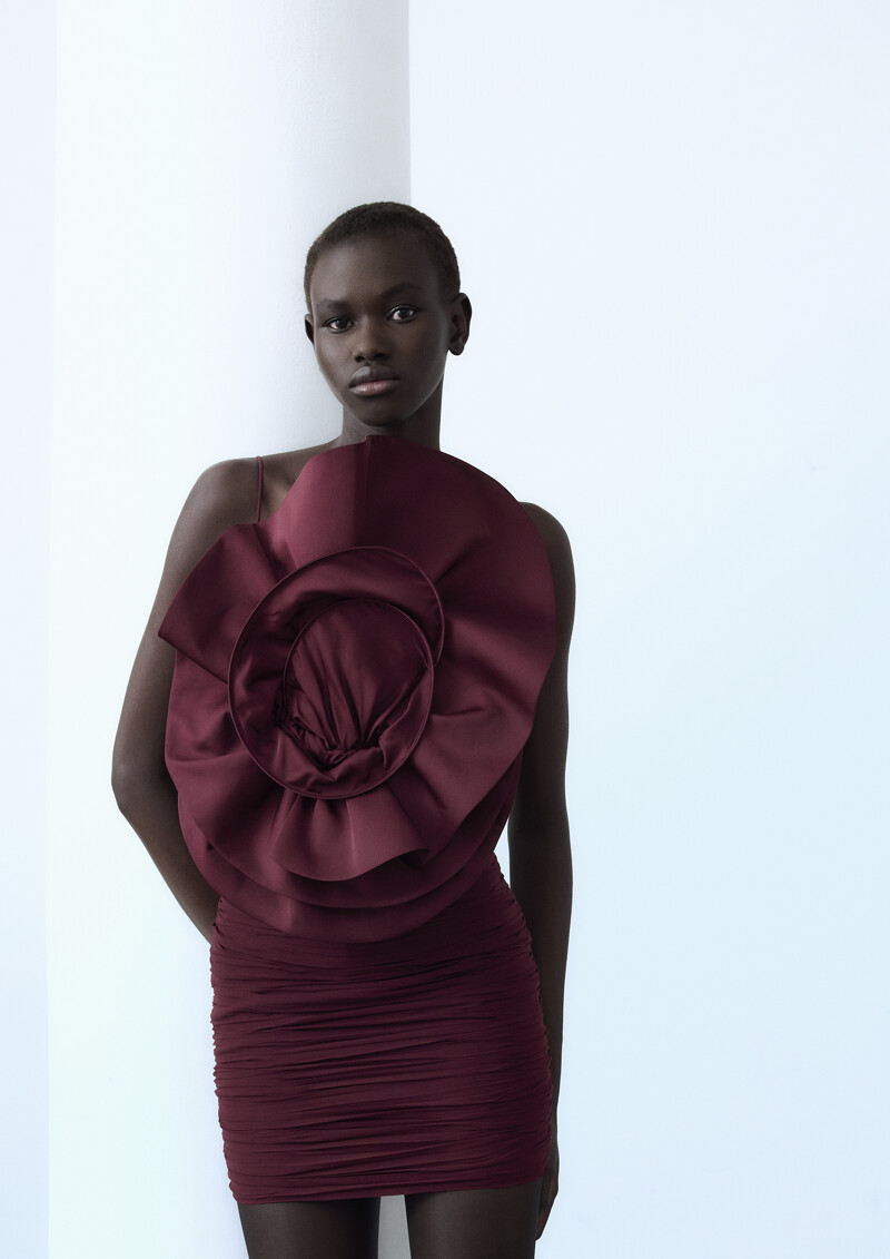Magda Butrym H&M。 MC:这次以玫瑰为灵感的合作,如何诠释女性的柔美与坚韧?哪一件作品最能体现这种对比?