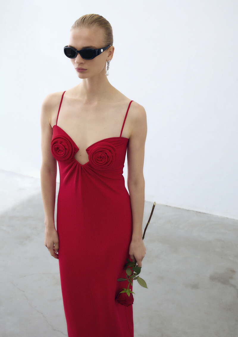 Magda Butrym H&M。 Magda Butrym H&M。 Magda Butrym的设计语彙极其清晰——雕塑般的垫肩、立体的手工玫瑰花、镂空钩织的轻盈材质与斜裁的性感裙襬。Magda Butrym让花朵不再只是温柔的装饰,而是带刺的保护、带有自我主权的性感。这样的风格,吸引了 Hailey Bieber、Emily Ratajkowski、Rosie Huntington-Whiteley 等时尚名人追随,但他更在意的是,那些的女性。他曾说,