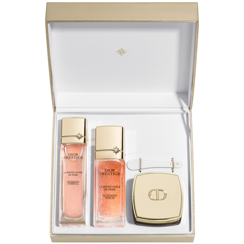 迪奥玫瑰微导精露养肤组 内容:精萃再生玫瑰微导精露30ml、精萃再生微导凝露30ml、精萃再生玫瑰赋活乳霜15ml。