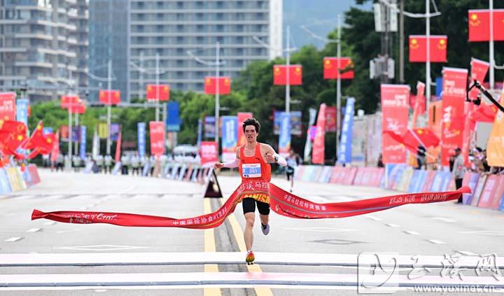 全程马拉松男子组冠军。玉溪市融媒体中心记者 曾永洪 摄